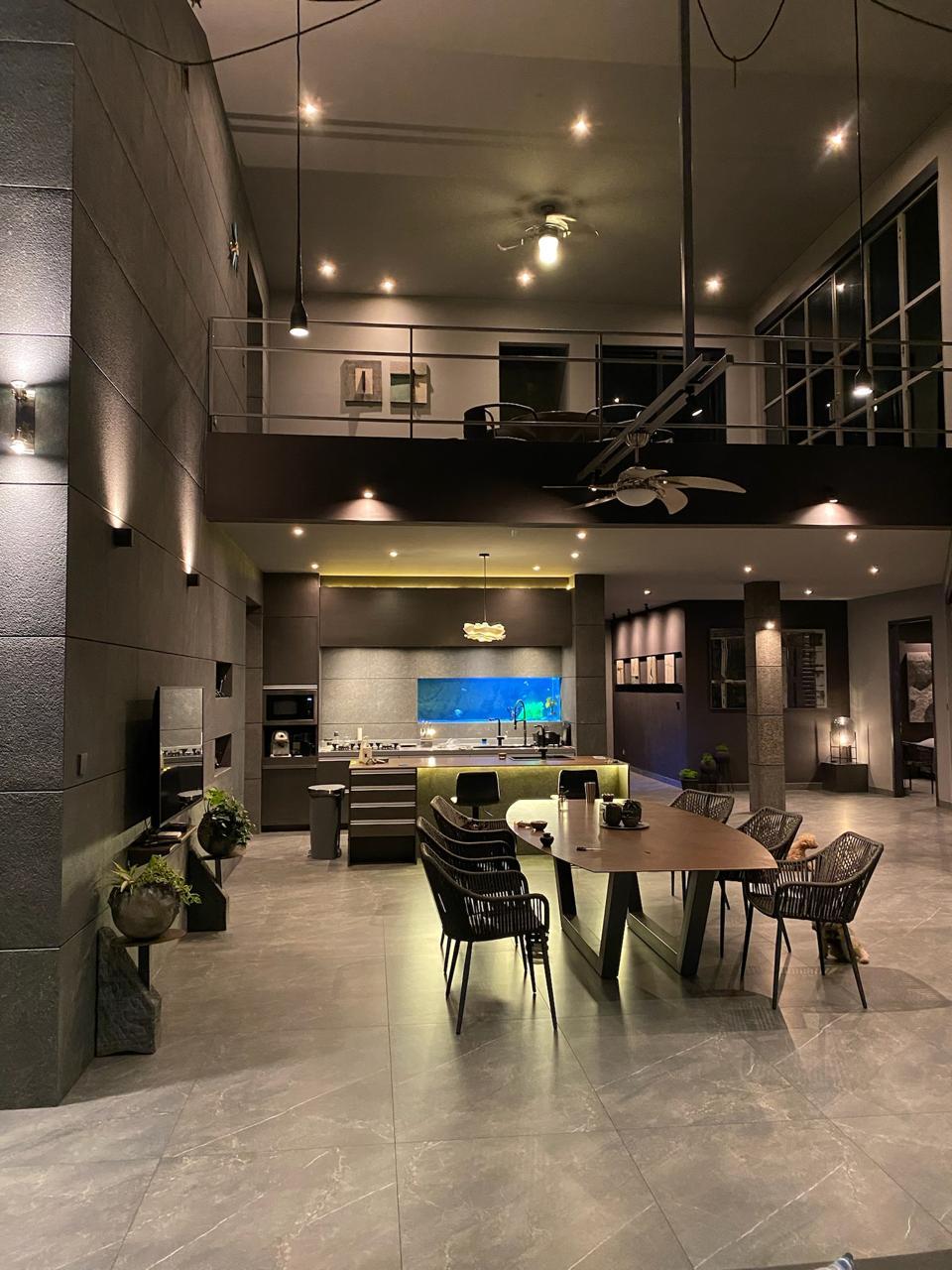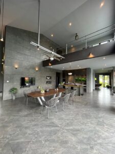 • Open-plan living, dining, and modern kitchen area