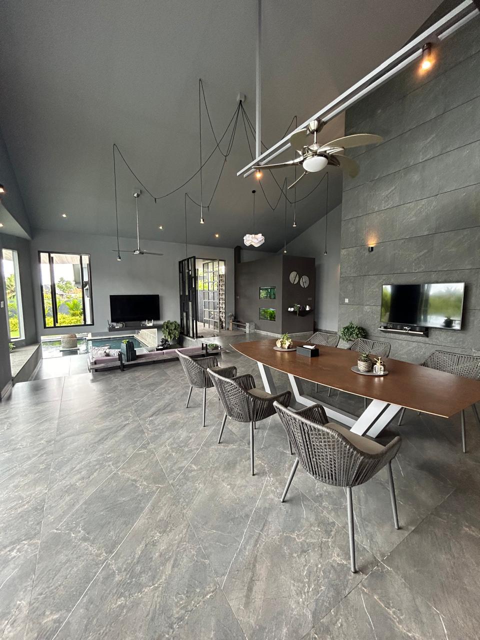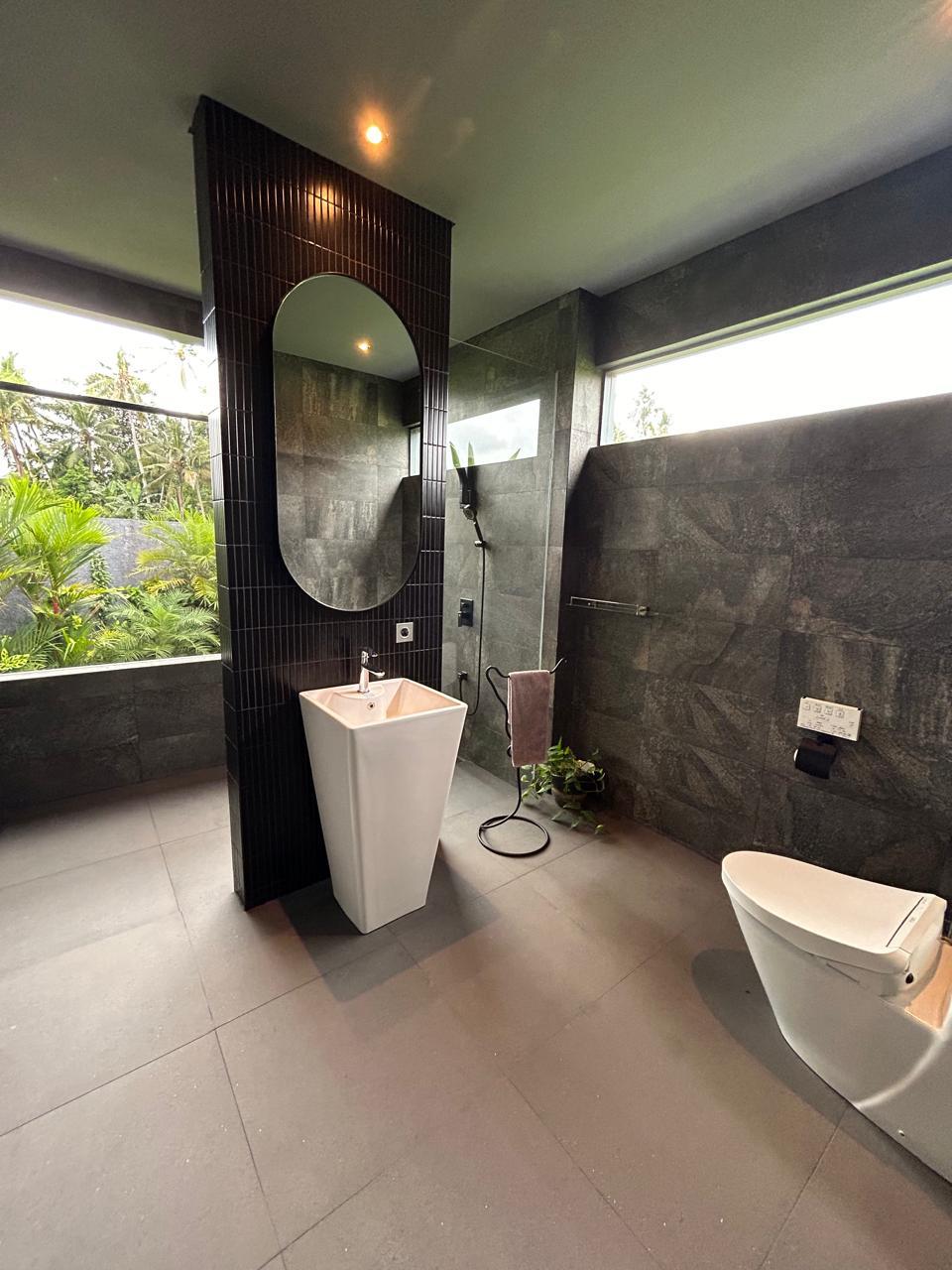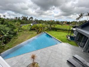 This villa blends modern industrial architecture with Bali’s natural ambiance. The open-plan layout with high ceilings creates a spacious and comfortable living environment, while jungle and rice field views offer a strong sense of tranquility. Ideal for private living or as a premium rental villa investment.