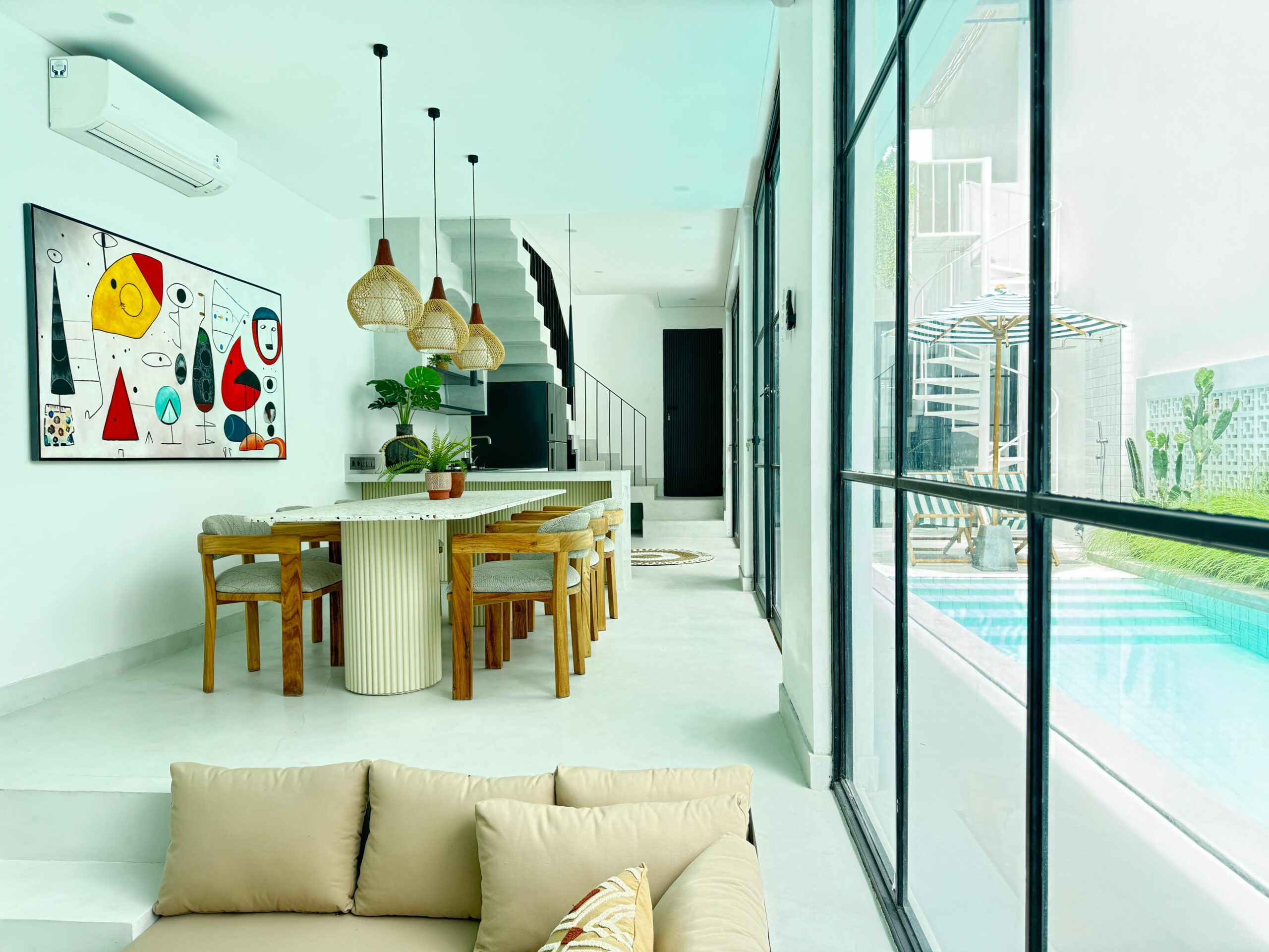 This modern villa features a contemporary tropical design focused on comfort and practicality. The open-plan living and kitchen area creates a bright and airy ambiance, complemented by a private swimming pool ideal for relaxation. Suitable for private residence or as a rental property for both short- and long-term stays.